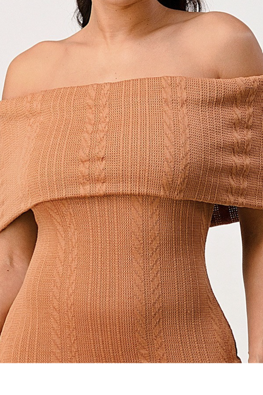 Carmel Off The Shoulder Cable Knit Midi Dress