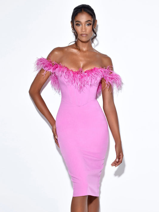 The Teresita White Off-the-Shoulder Feather Corset Dress